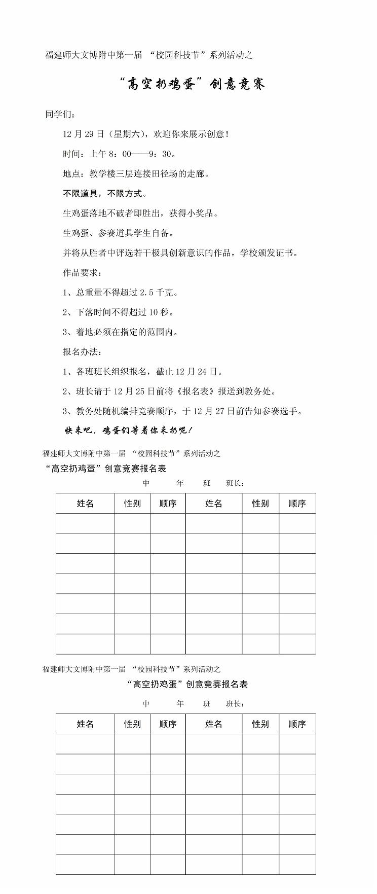 高空扔鸡蛋创意竞赛