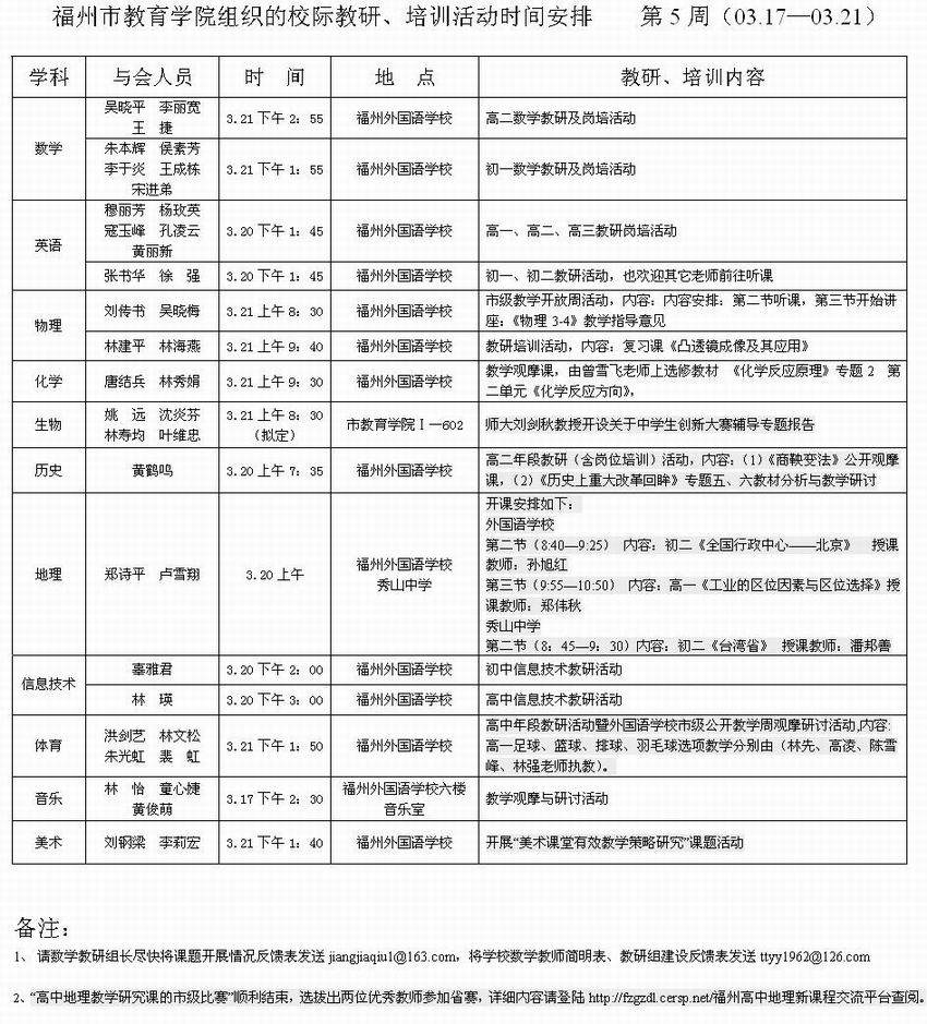 第5周市教研培训活动安排