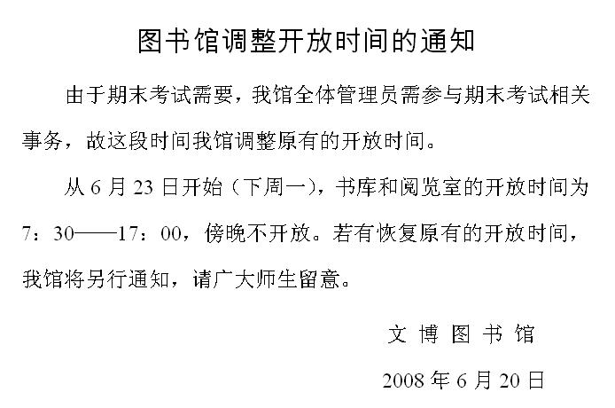 图书馆调整开放时间