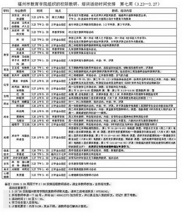 初二年段教研培训,内容听课和评课(听两节课), 也欢迎初二英语教师参加听课和评课。 |