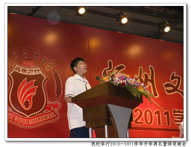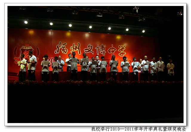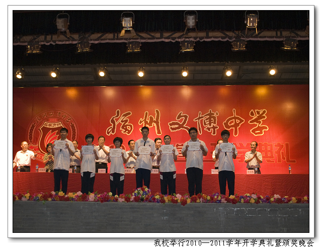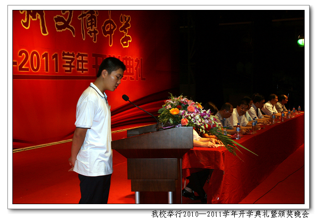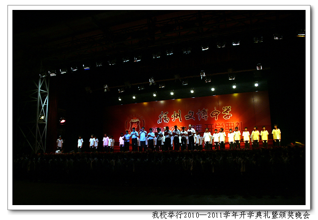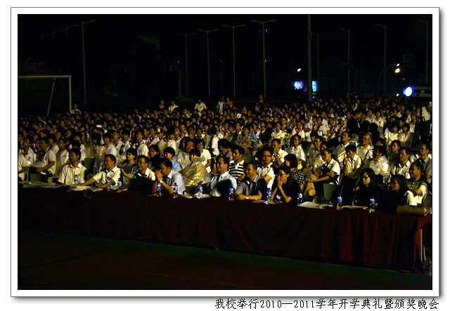 2010年8月31日下午6时,我校2010—2011学年开学典礼暨颁奖晚会在校操场隆重举行。