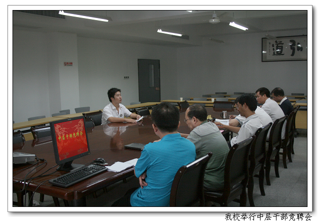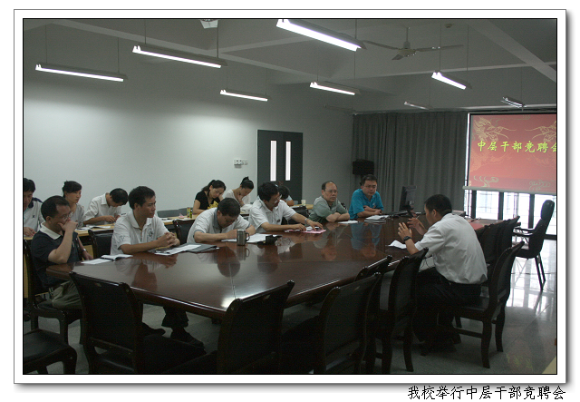 俞继圣校长主持竞聘考核,充分肯定了六位同志勇于挑战自我,承担重任,与学校共进退、同荣辱的积极负责态度,指出随学校事业的发展,中层干部队伍将面临更大的挑战,希望能有更多同志,积极投身到中层管理工作中来。
