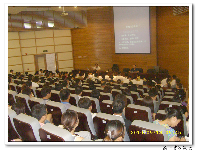 9月18日上午九点,我校翔越级(高中2010级)全体学生家长、教师及校领导共三百八十余人会聚在校会议中心,召开以“我们为理想而来”为主题,以“了解孩子优缺点,明确孩子成长需求;为孩子确立目标、树立理想。”为目的的首次家长会。