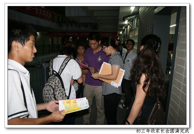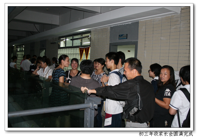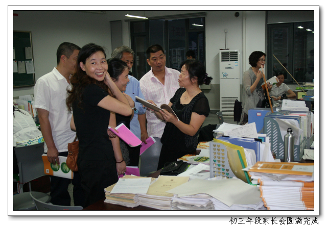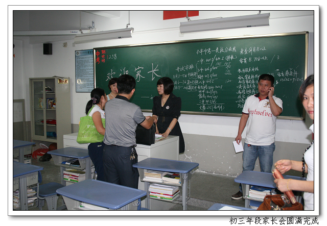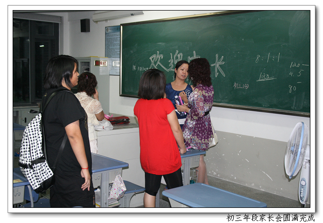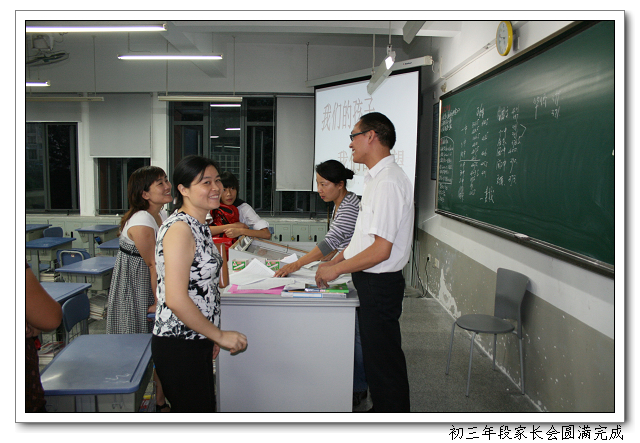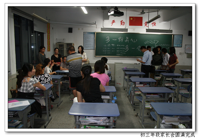 会议的最后安排家长返回班上,由班主任及科任老师与家长交流第一次月考及子女学期初在校表现情况,有的家长与班主任交流到傍晚七点多才离开学校。