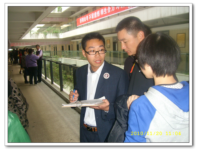 在年段集体家长会后,各班召开了班级家长会,家长、老师、学生三方进行面对面深入的沟通,针对学生个体情况,共同制订了下阶段的学习、生活计划。家长会的热烈气氛持续到中午12:30,之后,仍有很多家长通过电话、QQ、电子邮件等方式与老师进行交流……