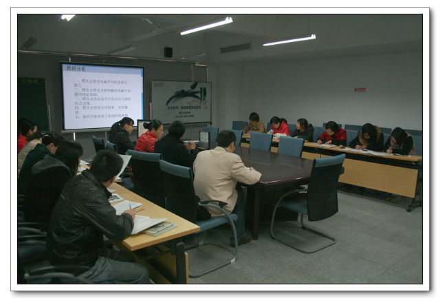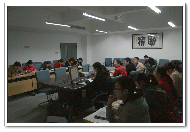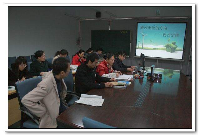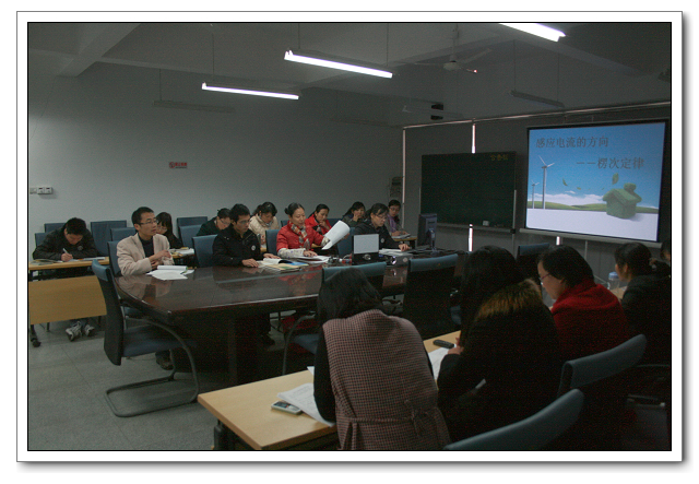 12月10日星期五上午第三节、第四节,福州文博中学高二、高三物理集备组在三楼会议室开展集备活动,全体理、化、生老师前来观摩。本次活动由蒋彩真老师主备、主讲,蒋老师全面、细致地分析了本课在高中物理教材中的地位、学生的学情,确定了教学目标、教学重点和难点,认真阐述了教学设计和实验设计。吴晓梅、张从刚两位老师对主备方案中的各个环节进行了交流和讨论,经讨论最后修改和确定各个环节的教学设计,讨论过程很深入、很热烈,有放有收,收到很好的集备效果。