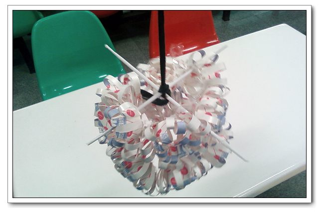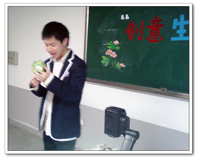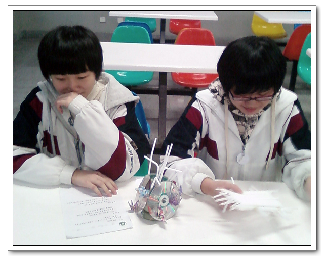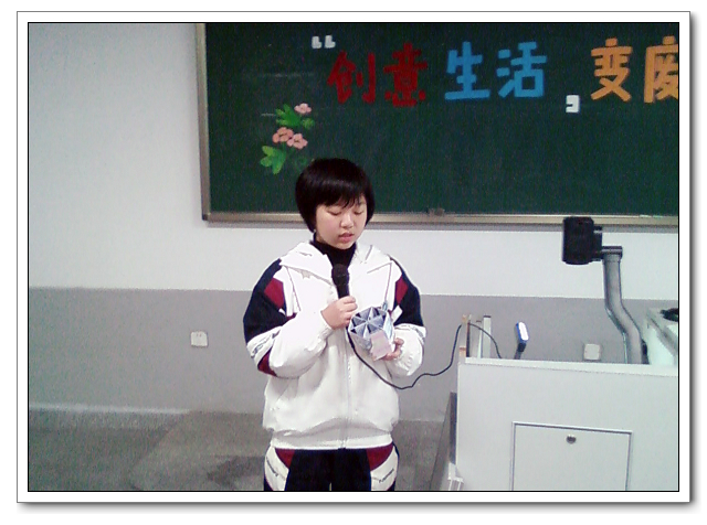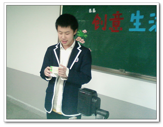 比赛在高二(1)班“大相框”的展示与解说中拉开序幕。这款由废弃灯管和报纸做成的大相框使得在场观众真正体会到了由 “废”变“宝”的过程。紧接着,参赛选手各显神通,以生活中常见的废品为主要材料,通过精心的设计和手工制作,使之变成美观实用且富有创意的生活用品。比赛结果,初一(7)班杨雷欢同学的简易收纳盆在众多作品中脱颖而出,获得初一年段的一等奖;高二(7)班黄祖伟与徐鸿权同学的重力台灯、高二(6)班的小夜灯、高二(1)班陈倩同学的吊灯也征服了在场的评委,获得高二年段的一等奖。其余的展示作品分别获得二、三等奖。