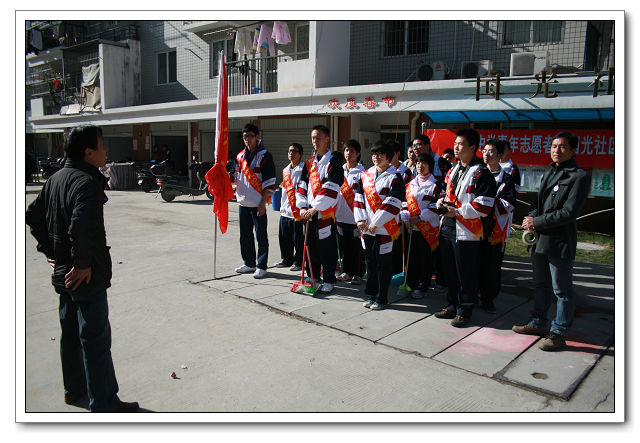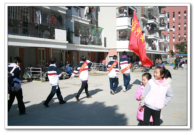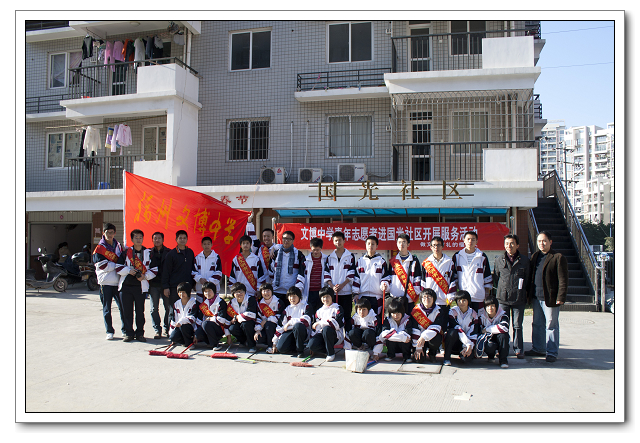 12月26日下午,我校20余位学生走出校园,走进国光社区,担当志愿者。志愿者们走进孤寡老人家庭,带去欢乐;帮忙打扫社区卫生;协助调查社区店铺消防措施,宣传消防知识等。