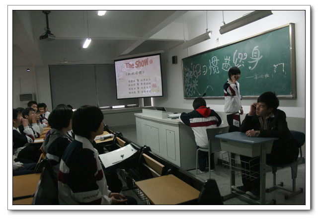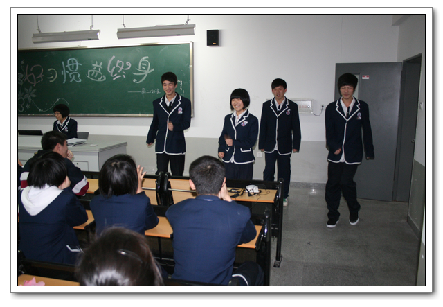 承办班级的同学积极参与,从节目筹划、课件制作、节目排练、主持表演,都一丝不苟。虽然有的同学是第一次上台表演或主持,有的节目还不很成熟,但同学们积极努力的场景让人难以忘怀。初二(3)班的情景剧、初一(5)班的故事会、高一(8)班的书法表演、高二(2)班的主持人串场……一个个精彩纷呈,启人心智。