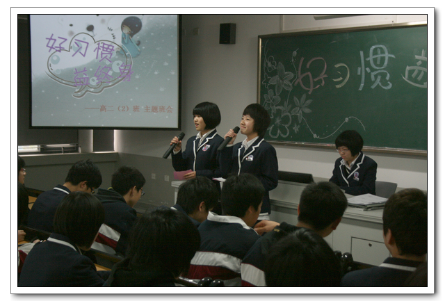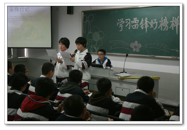 这次活动的开课班级有初一(5)班、初二(3)班、高一(8)班、高二(2)班。初中的主题是:“向雷锋同志学习”,高中的主题是:“好习惯,益终身”。