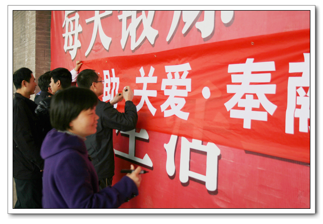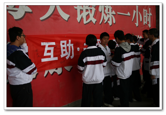 看到签名横幅张贴在过道上时,大家踊跃参与,纷纷上前签名。3月9日,横幅被写满了,同学们仍意犹未尽。总的来说,这次活动给雷锋月开了一个好头!
