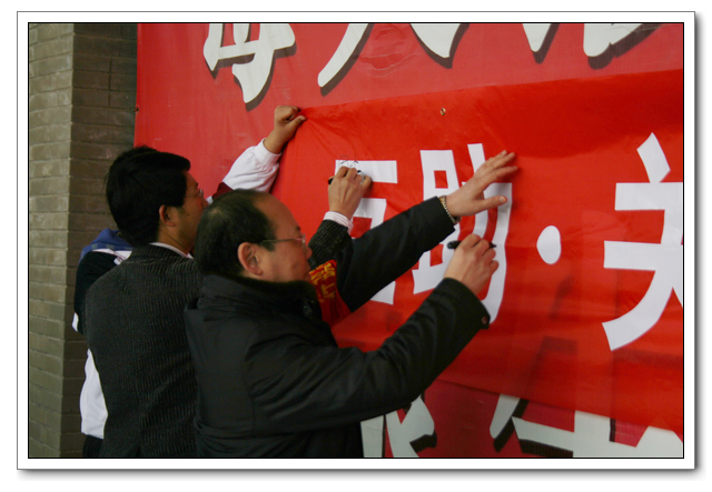 2011年3月8日课间操时间,我校进行了雷锋月活动启动仪式,仪式由初二(8)班陈楚怡同学主持,启动仪式上由校领导、班级代表参与的签名活动拉开了内容丰富的雷锋月活动的帷幕。