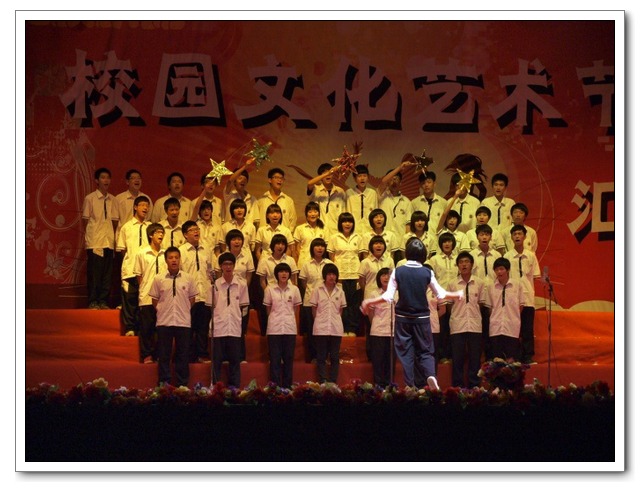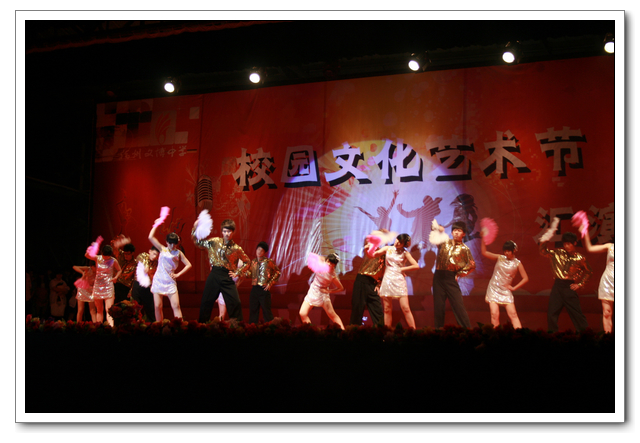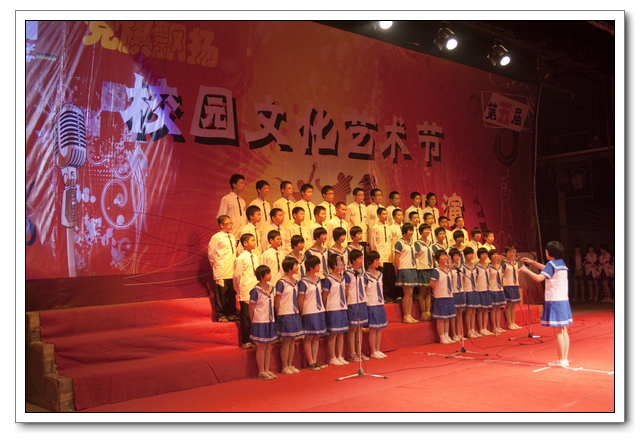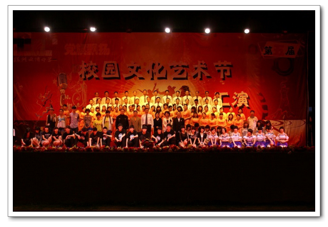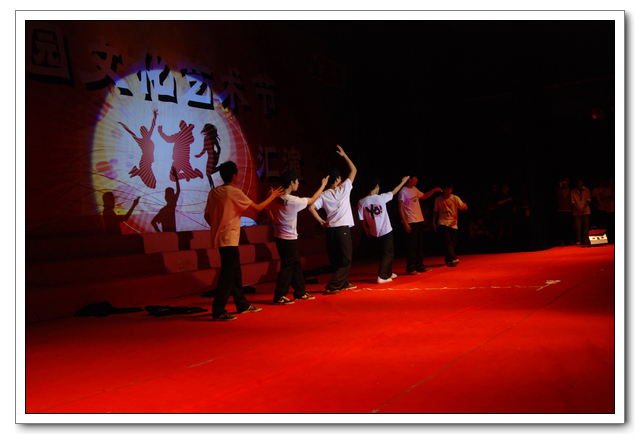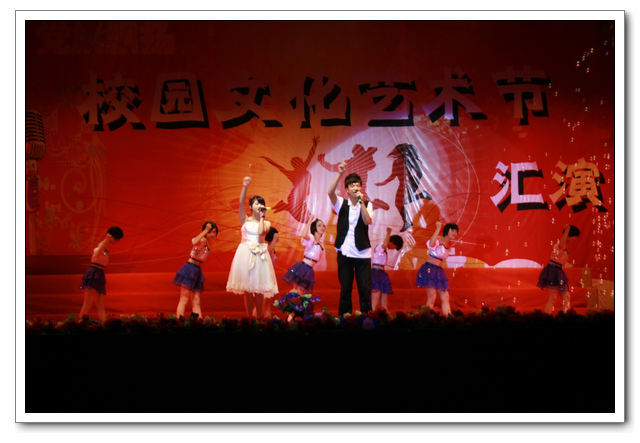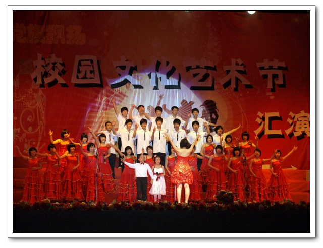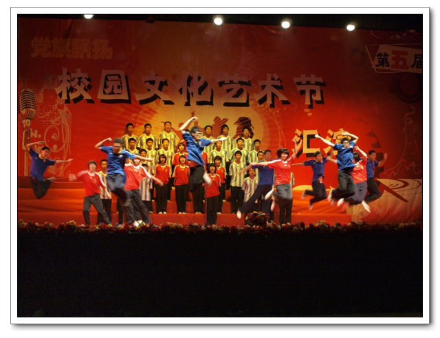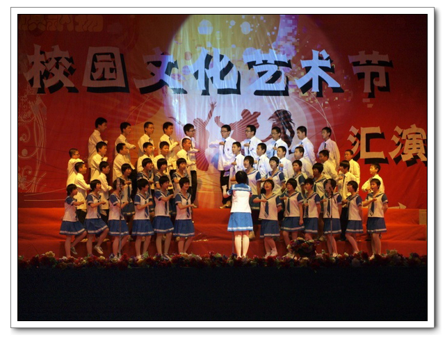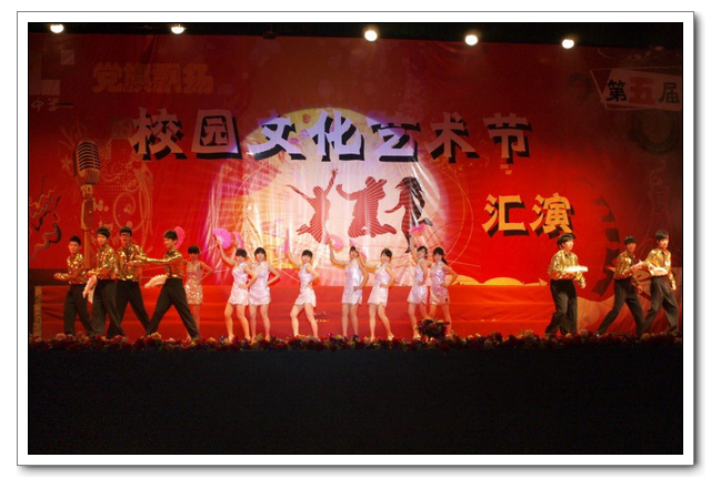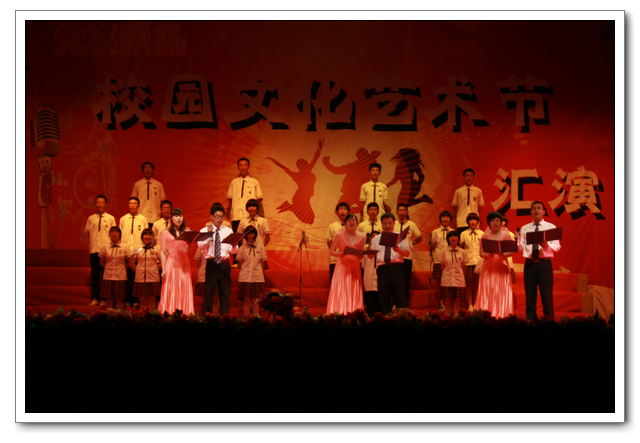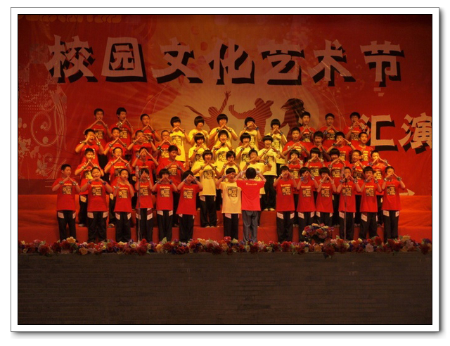 这次校园文化艺术节,内部丰富、形式多样。有“歌唱祖国、歌唱党”的班班有歌声比赛;有“我的家、我做主”的学生宿舍设计评比;有“党旗飘扬”班班书法、美术作品展及“纯真的叙述”剪纸艺术作品展;有诗歌朗诵、演讲比赛。尤其在4月30日的艺术节文艺汇演晚会上,师生同台“才艺大比拼”,自编自导的“时装秀”、魅力魔术、激情街舞等节目,给全校师生呈上一台丰盛的视觉盛宴。全校13个学生社团百花齐放,开展活力四射的文艺活动。45个班级,45支队伍,跨越课堂教学的时空,共同演绎了全面互动、和谐发展的美好未来。