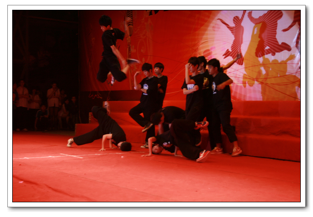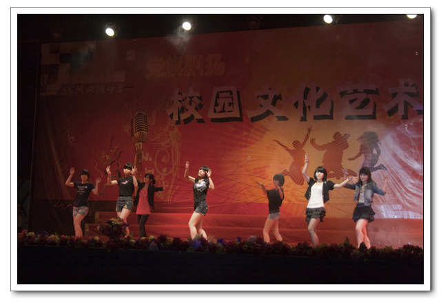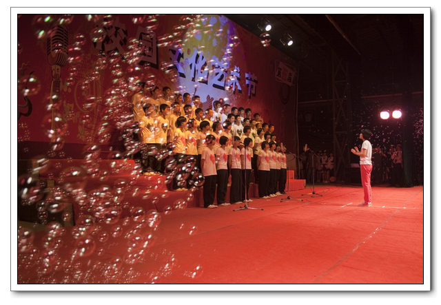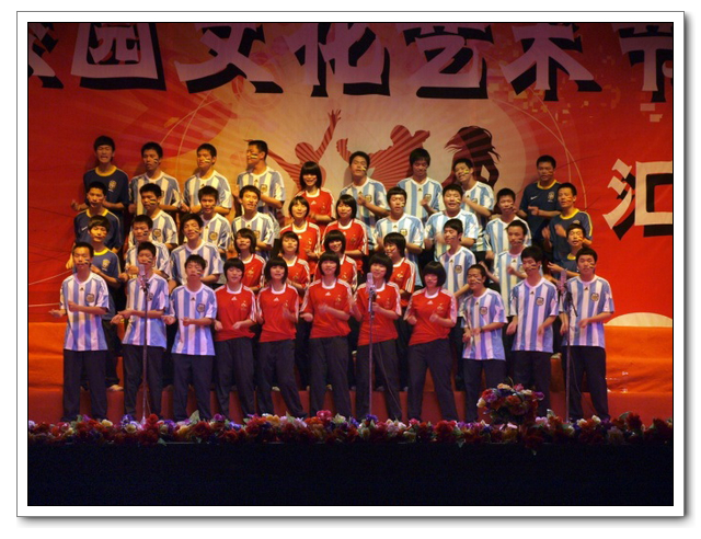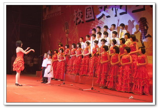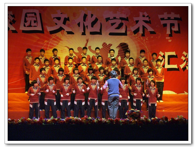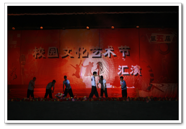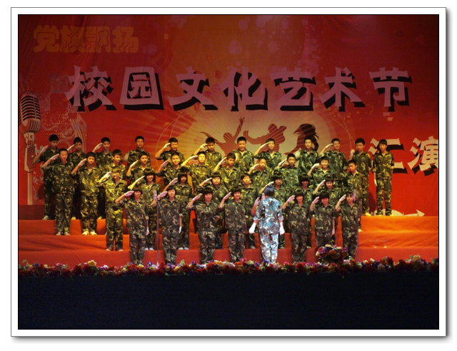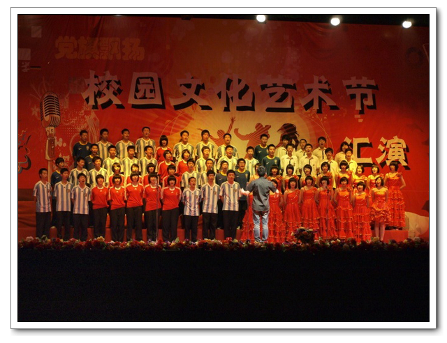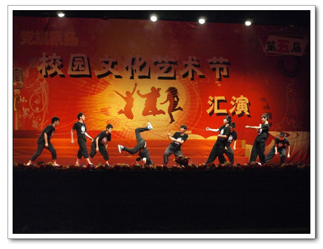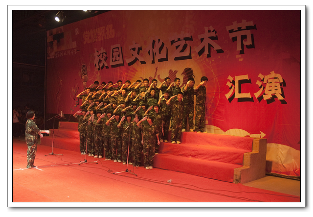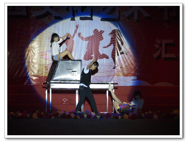 这次校园文化艺术节,内部丰富、形式多样。有“歌唱祖国、歌唱党”的班班有歌声比赛;有“我的家、我做主”的学生宿舍设计评比;有“党旗飘扬”班班书法、美术作品展及“纯真的叙述”剪纸艺术作品展;有诗歌朗诵、演讲比赛。尤其在4月30日的艺术节文艺汇演晚会上,师生同台“才艺大比拼”,自编自导的“时装秀”、魅力魔术、激情街舞等节目,给全校师生呈上一台丰盛的视觉盛宴。全校13个学生社团百花齐放,开展活力四射的文艺活动。45个班级,45支队伍,跨越课堂教学的时空,共同演绎了全面互动、和谐发展的美好未来。