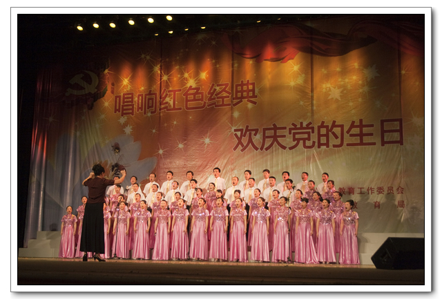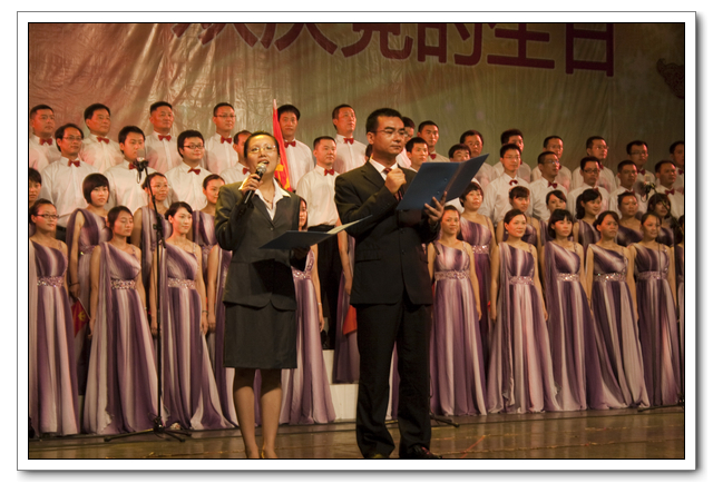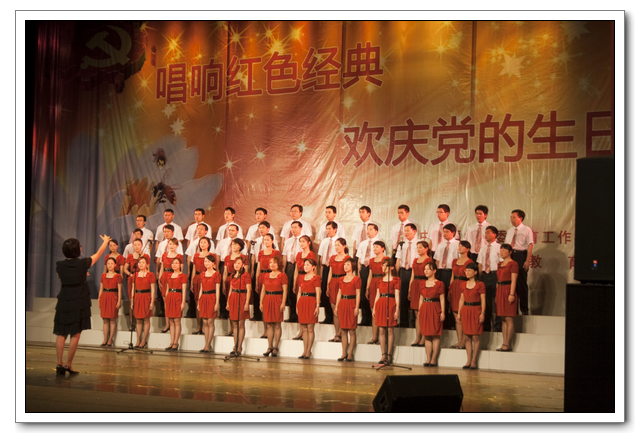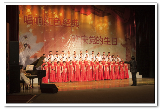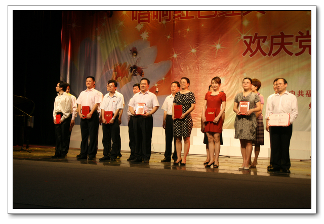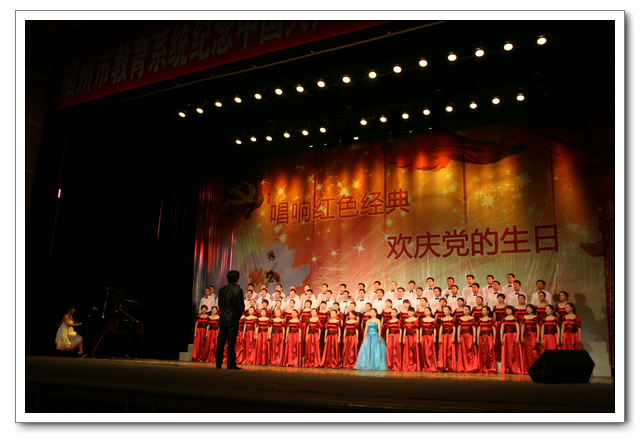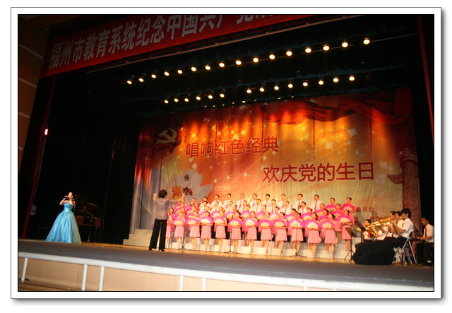大会在庄严的《国际歌》声中结束。随后,福州市教育系统庆祝中国共产党成立90周年合唱比赛拉开序幕,市属院校进入决赛的8支代表队演唱了《没有共产党就没有新中国》、《在灿烂阳光下》、《走向复兴》等歌曲。由我校党支部林仰仙书记带领的我校党员合唱队参加了民办学校合唱团的演出。民办校合唱团获得了总分三等奖的成绩。