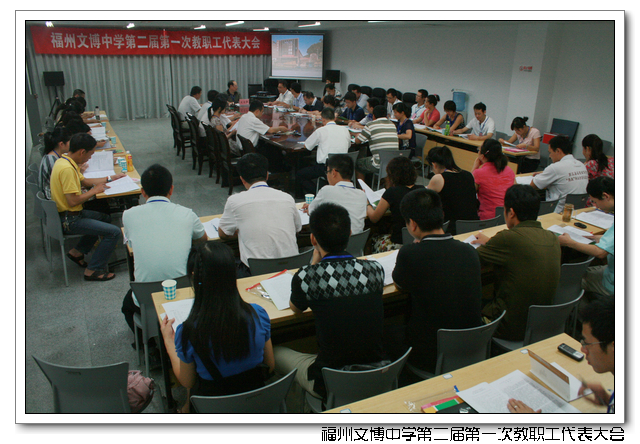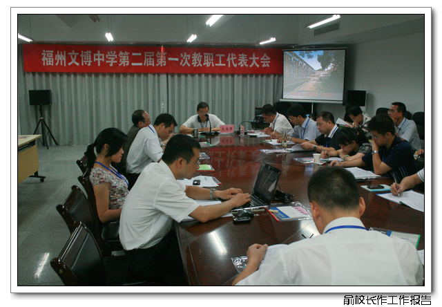 2011年8月13日我校召开“福州文博中学第二届第一次教职工代表大会”,大会按预定的议程取得了圆满成功!