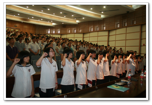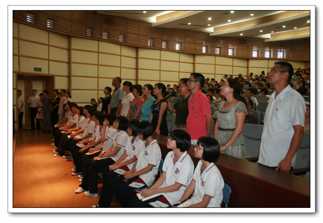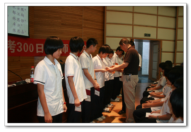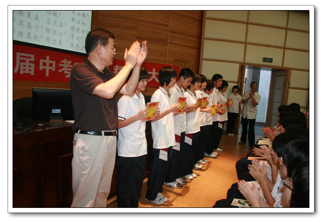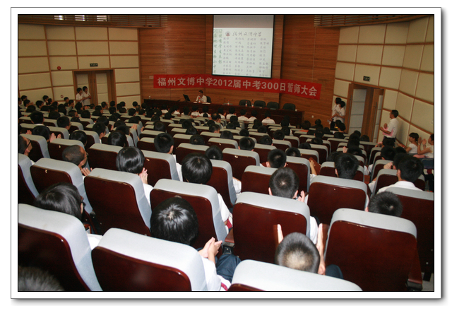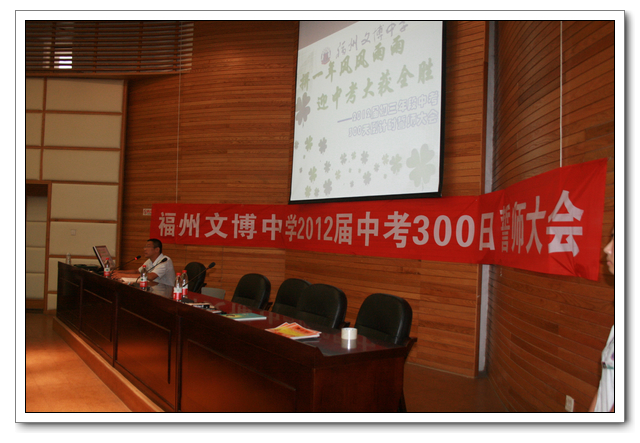 8月16日下午,这是一个特殊的日子,从此刻起,离2012届新初三学生参加中考的日子仅有300天了。尊敬的俞校长和25位家长代表亲临现场为初三学子加油鼓劲。会议由周圣段长主持,一开始便颁发了地理、生物小中考的优秀生与初二下学期期末考试优秀学生、进步生等三项获奖学生奖状。然后是家长委员会会长陈丹鸿女士的发言,讲话中饱含了所有家长对子女的期盼与关怀。接下来段长邀请了学生代表张守杰同学发言。俞校长的讲话对初三年段工作提出了具体要求,对所有老师的工作给予了肯定,也提出相应的工作要求,也给家长给予了提醒,同时给予了初三同学鼓励。300日誓师大会,所有教师、学生们都一齐庄严宣誓,他们已经准备好了,向中考发起进攻,以坚强的意志、认真的态度、高超的技艺去战胜中考,让我们牢记俞校长所说:“成功没有捷径,成功需要付出。”相信今天他们为文博而骄傲,明日文博将以2012届初三而自豪!