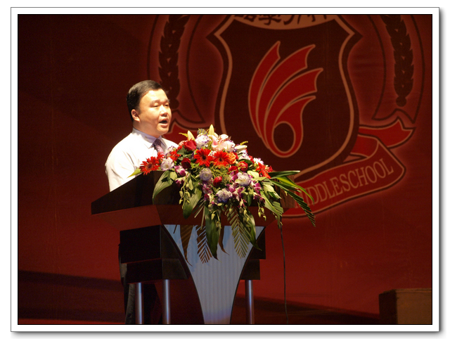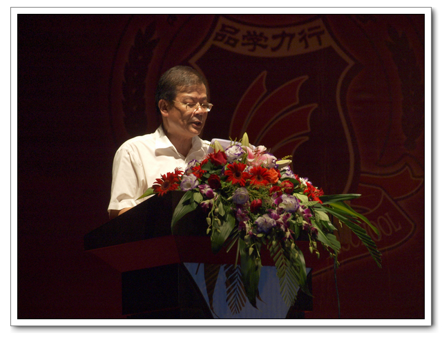 福建金帝集团总裁李雄虎先生为开学典礼致辞,代表集团董事会对学校2011届高、中考取得的成绩表示衷心的祝贺,勉励全体师生奋发向上,践行品学力行精神,为创百年名校不懈努力。