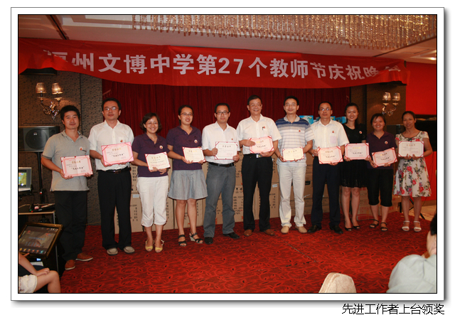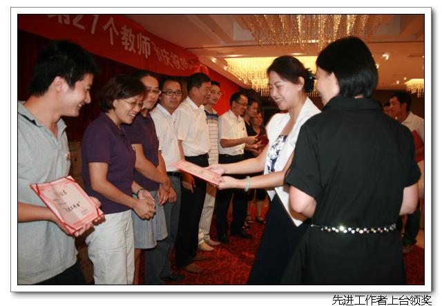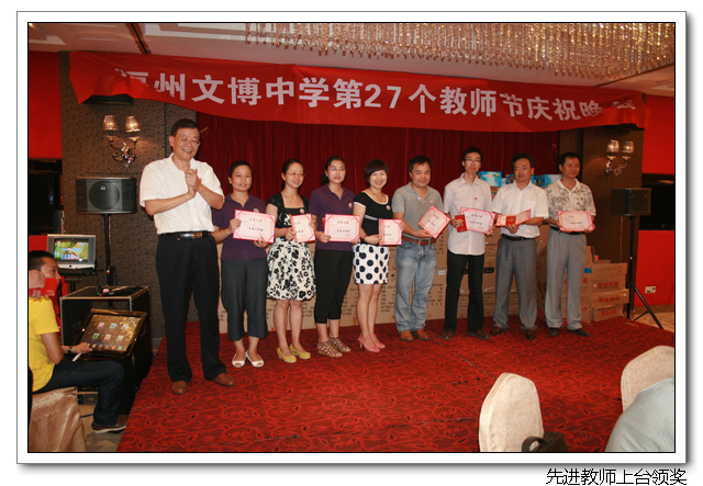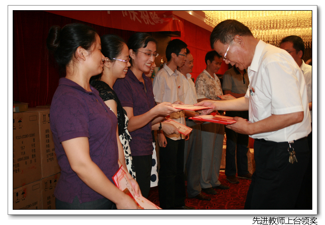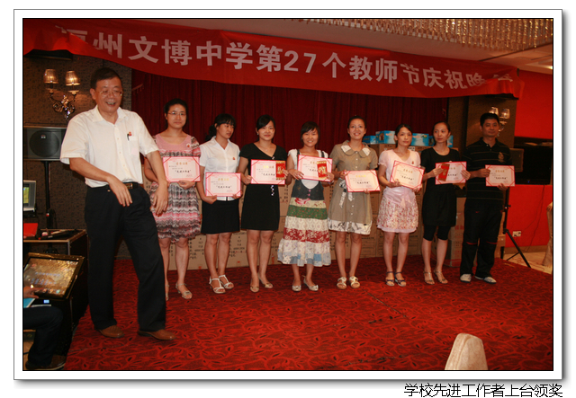 接着,俞继圣校长和应我校邀请参加宴会的等公司领导,一起为学年各类校先进,吴晓梅、陈成云、余光亮等39名老师颁发了荣誉证书。