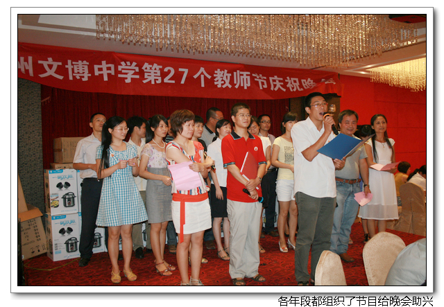 9月9日晚,我校第二十七个教师节庆祝晚会隆重举行。晚会由颁奖典礼和联欢晚宴两个部分组成。
