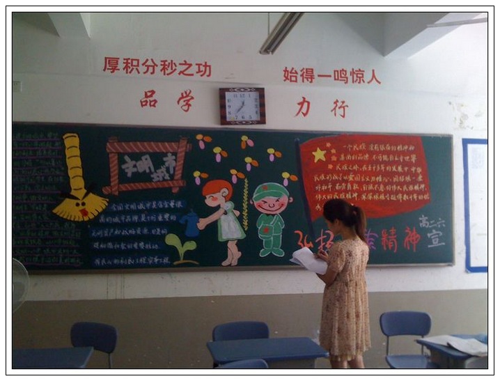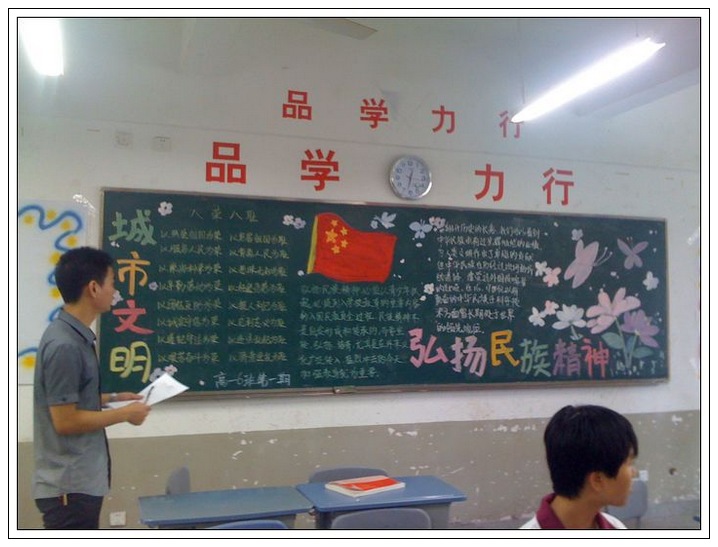 今年9月是全国第八个“中小学弘扬和培育民族精神月”;恰逢福州市迎来全国文明城市检查。我校以此为主题,并结合期初学生的军训和社会实践,举办了此次墙报和黑板报的展出与评比活动。活动得到所有班级的积极响应,同学们在班主任的指导下,精心设计与认真制作,一个个主题鲜明、版面精美的墙报与黑板报,展示在了师生面前。