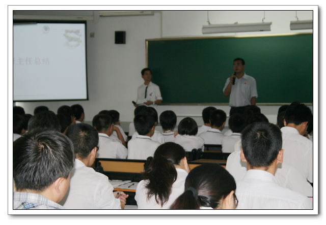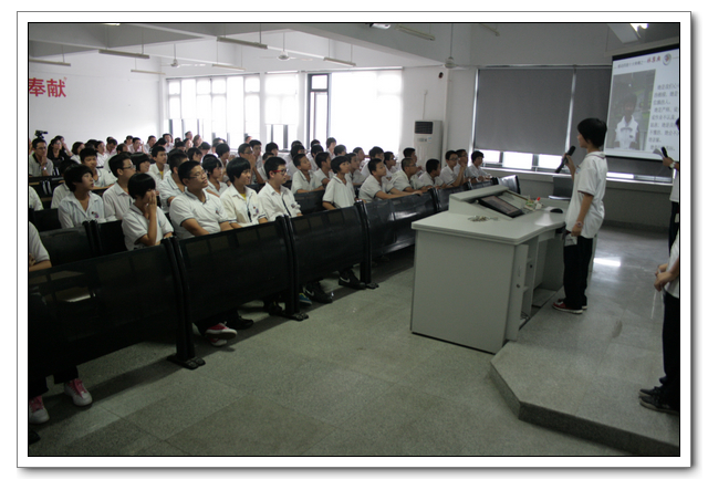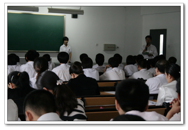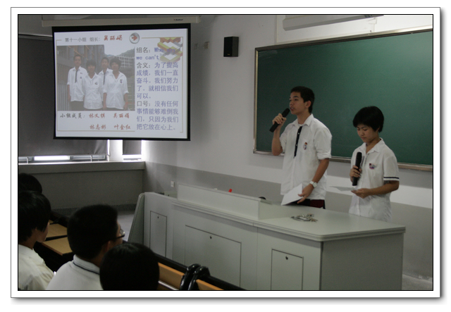2011年9月26日下午第一节课,初二(4)班在教学楼四楼大课教室(一),召开“团结奋进,锐不可当”的主题班会,获得来自福州市一中的李家国段长和学校领导的一致好评。