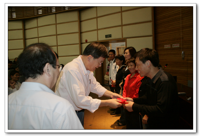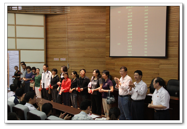 会上,俞校长给“2010-2011年度奖学金获得者”颁发了奖学金,并请学生家长上台领奖,不仅激励了品学兼优的同学,同时也是对广大学生家长积极配合学校教育好子女的肯定。