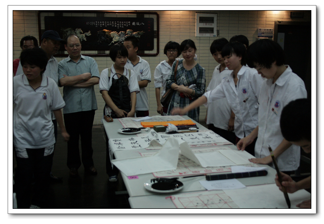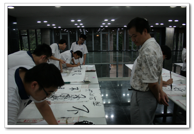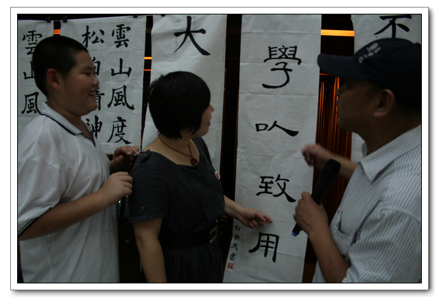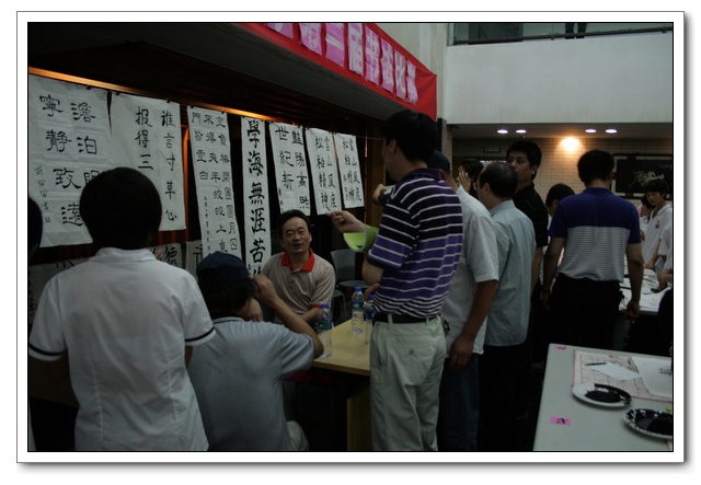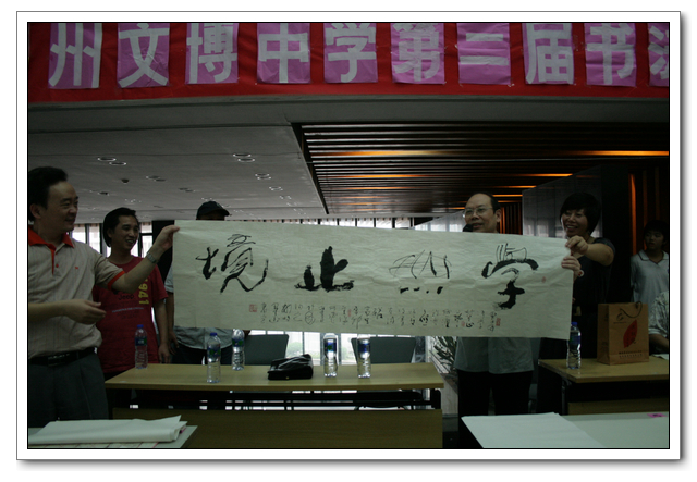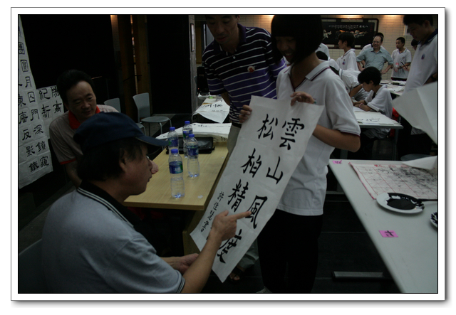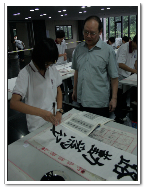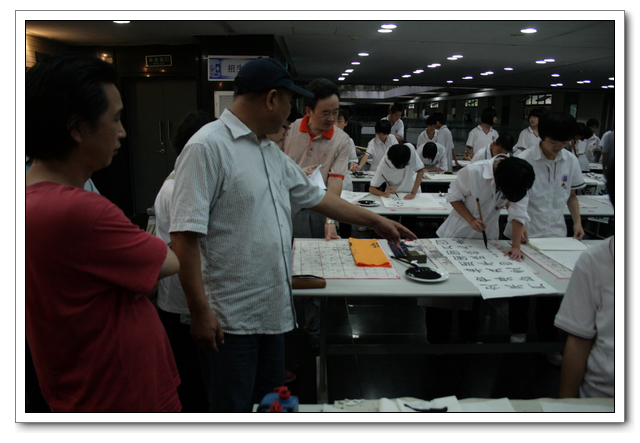 本次比赛,“硬笔书法”分为初中组和高中组全员选拔,参加决赛共有106人;“毛笔书法”不分年级,共有58人参加现场比赛。此次现场“毛笔书法比赛”有幸邀请了:黄信贤老师(福州教育学院美术科主任)、祝玉景老师(中国书画研究院院士,福建书法家协会会员)、林斌老师(中国书画协会理事)做评委,评委们认真审看学生的书法作品,经评委们认真评议,最终评出了一等奖2名、二等奖4名、三等奖6名、优秀奖6名。比赛结束后几位老师和同学们共同交流学习毛笔书法的经验与心得,并现场书写画作,供老师和同学们共同欣赏与学习。