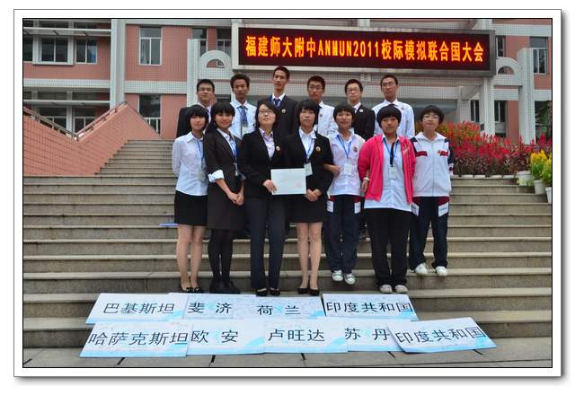 我校模拟联合国社团受福建师大附中邀请于10月4日至10月6日在师大附中参与了福建师大附中ANMUN2011校际模拟联合国大会。(参会学校包括福州所有一类校及南平一中)