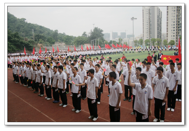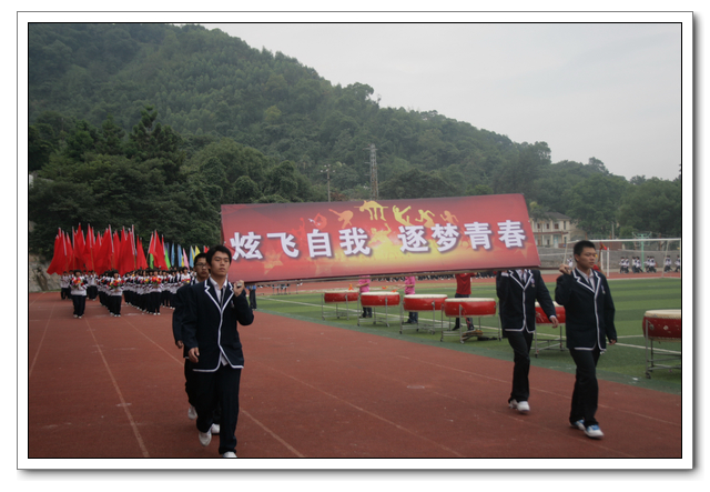 值得一提的是各班大本营举旗扎寨、车水马龙,又是本届校运会的一大亮丽的风景线,六个年段48个班级,气氛浓郁、纪律井然、卫生干净、积极投稿。在集队、进场、就坐、退场等方面都能听从指挥、按照要求、认真执行,整个赛事过程都体现了井然有序,各方面表现可圈可点;特别是保洁方面,同学们都自觉地把包装袋、饮料瓶、纸巾等废弃物放入指定的收集袋中,体现了我校学生的环保意识在逐渐增强。义务纠察队员,卫生保洁员不遗余力地维持着赛场上的安全和清洁卫生,他们认真、负责地履行职责;福建师大体育科学院的21位实习老师的加盟,给本届校运会注入了新的活力;各路裁判员顶着太阳的光芒,在炎热的场地下默默地坚守着自己的岗位,公正、准确且及时公告成绩,多渠道联络班级,绝不敷衍,更不忽悠,他们正是沿着“纪律”和“效率”的双轨进行着,整个大会因和谐而魅力四射。大会秘书组、宣传组、总记录组集结了相当有实力的工作队伍,认真做好服务与宣传工作。大会共颁发获奖证书387本、奖状256张、金银铜奖牌共336面;总记录组共载录抄写了239份比赛成绩报告单;宣传组编写了17期大会快报,编改来稿5616份、播报497篇。为运动会保质保量、顺利运转保驾护航。在赛场上,运动员们个个竭尽全力、奋力拼搏,在同学们的摇旗呐喊,加油助威下赛出了一个又一个好成绩,为班级争取了不少荣誉。而没有项目的同学,则热心地为运动员们递水擦汗,主动搀扶精疲力竭的运动员,充分体现了“友谊第一,比赛第二”的运动精神。