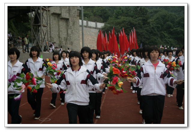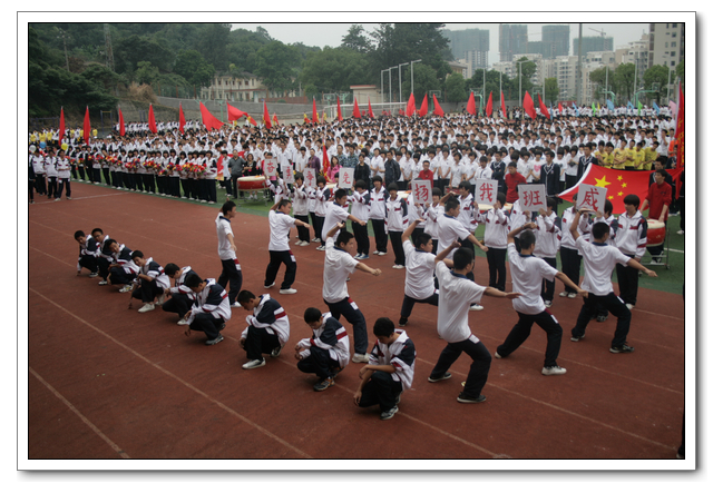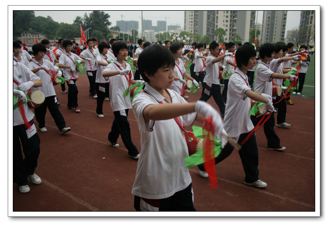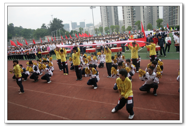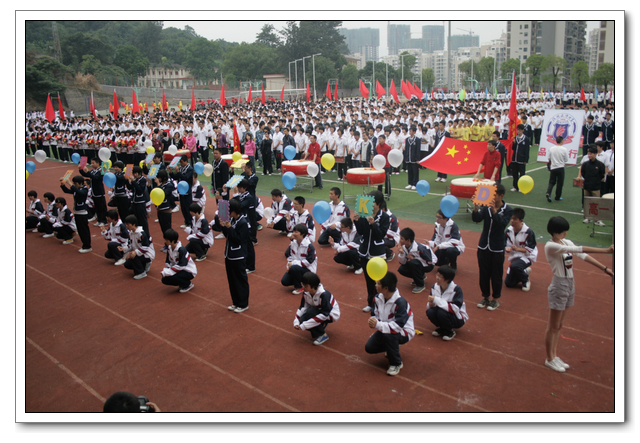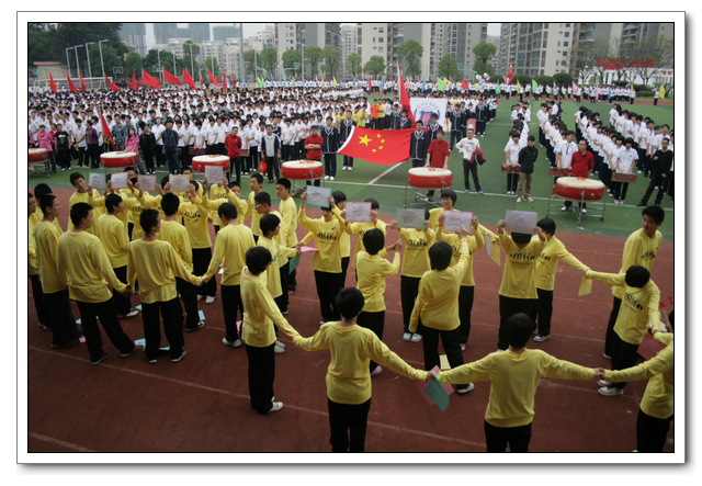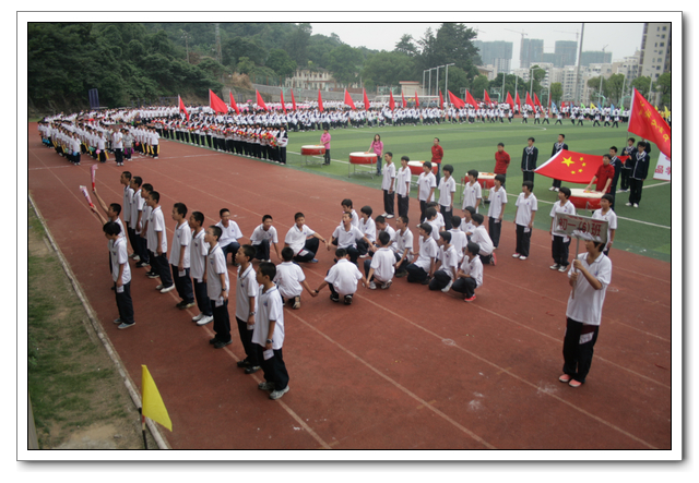 开幕式上,全体运动员精神抖擞,意气风发。在检阅行进间,六个年段各具特色的表演队伍,如:高三年段的彩旗队、鲜花队整齐划一;高二年段气势磅礴的舞旗与雷大鼓、自行车轮滑表演;高一年段的五环运动方队表演;初三年段准军事化的迷彩正步走方队;初二年段的腰鼓齐鸣,变色花束表演;初一年段天真活泼的英文字母与拉丁舞表演。他们以整齐规范的动作,气势磅礴的场面,严谨有序的组织,充分展示了热爱文博,以实际行动为文博争光添彩的高尚情操。