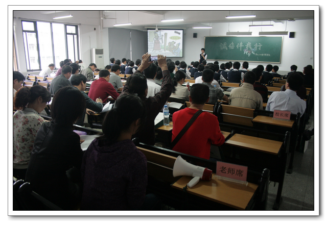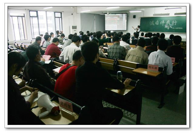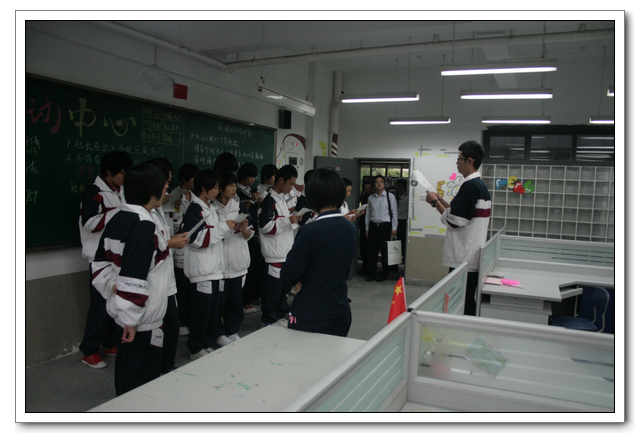其后,在福州文博中学校方领导引导下,我们参观了福州文博中学校的校舍、班级;在参观的间隙,学员们积极地和福州文博中学校方领导进行了交流互动。还观摩了以“诚信”为主题的班会活动,其形式多彩多样,学生参与热情极高。班会后,福州文博中学校长俞继圣为学员们做一场题为《校园文化建设与学生管理》的报告,并带领学员们观摩了学生社团活动情况。