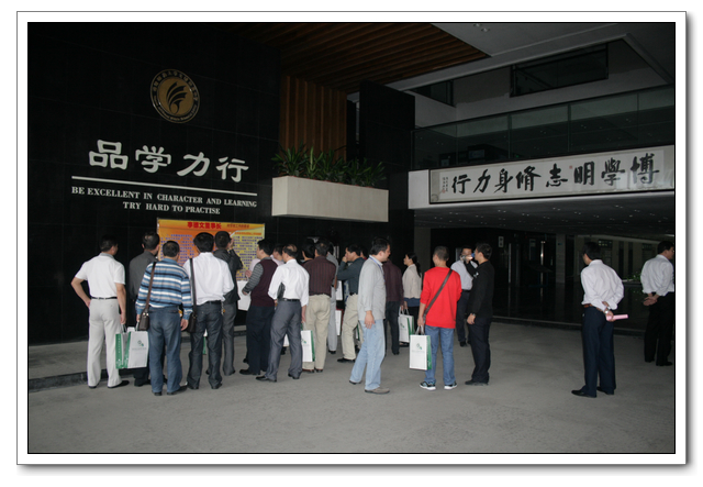 2011年10月27日下午,福建省“十二五”第一期义务教育民办学校校长培训班23位学员在教学班主任郑是勇带领下前往福州文博中学参观考察,学习福州文博中学在校园文化建设与学生管理方面的宝贵经验。在福州文博中学校方领导的热情迎接和精心安排下,全班学员和福州文博中学校方领导合影留念。