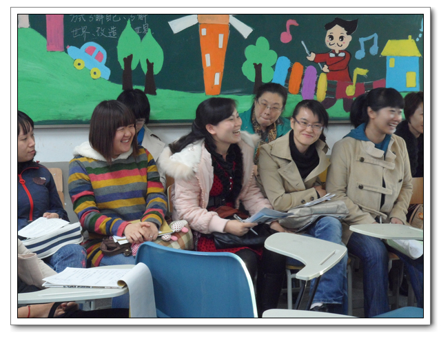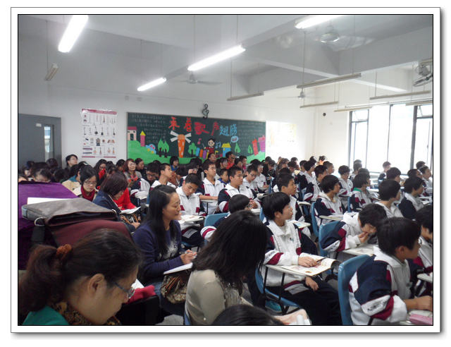 11月21日下午第二节,公开课在音乐教室(一)如期进行。来自市区、各县听课的音乐教师达一百多人,由于空间有限,许多老师只能站在走廊听课,让我们颇为感动。公开课课堂气氛融洽,学生配合默契,从演唱到欣赏,从回答到互动,都能够很顺利的进行,授课教师合理的安排好课堂秩序,有效的使用教学方式调动课堂气氛,达到良好的教学效果。