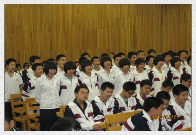 2012年4月27日(星期五)下午第3、4节,初二年全体学生在会议中心一楼隆重热烈召开了半期考表彰会及地理生物中考动员会。