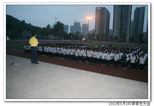 2012年5月3日晚18点30分,我校德育处组织召开了全体寄宿生大会,周啸翔副校长、德育处林叔飚主任、吴燕红副主任、各年段值班老师和全体生管老师及全校寄宿生参加了此次大会。会上,周副校长对前段时间寄宿生的各项工作存在的问题进行了通报,并对下半学期寄宿生出操、安全、学习等工作提出了要求。