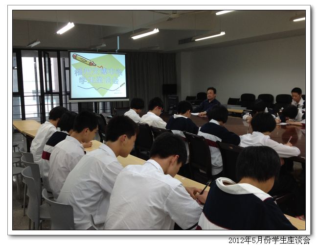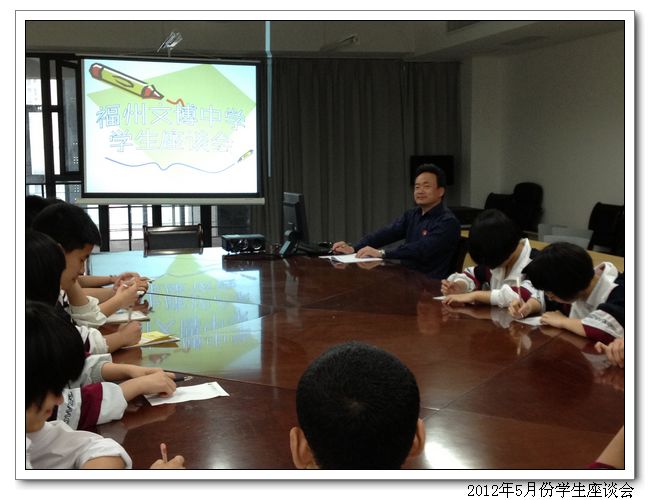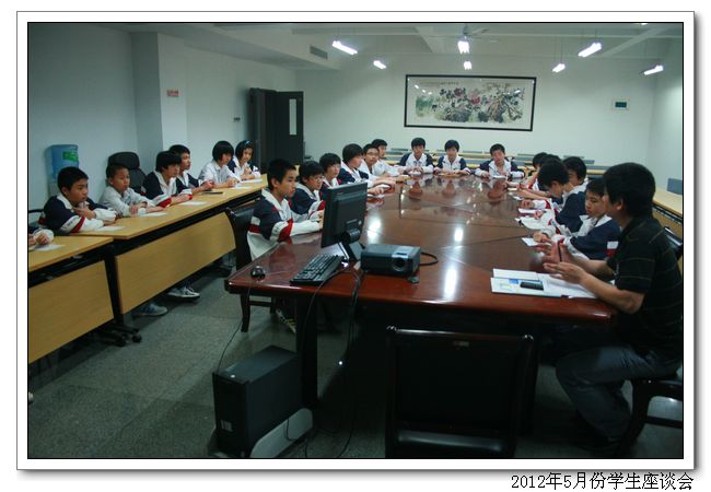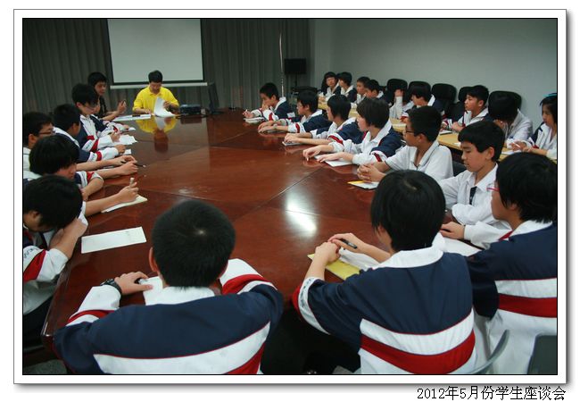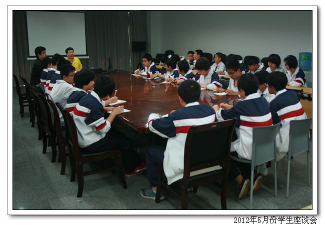 2012年5月2日到5月5日我校德育处召开学生座谈会,了解学生的实际情况,在会上,周副校长、林叔飚主任、吴燕红副主任认真听取了学生代表提出的建议和要求,互相交换了意见,对学生提出的问题都一一作了答复。学生代表们在会上各抒己见,积极发言,对宿舍、食堂、后勤、班级年段等学校工作都提出了宝贵的建议。