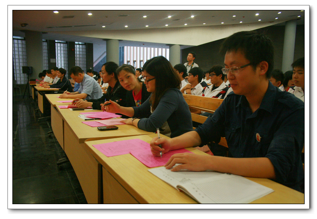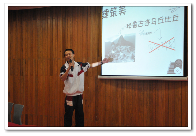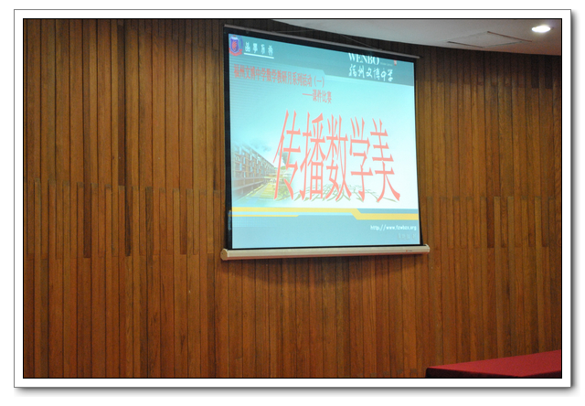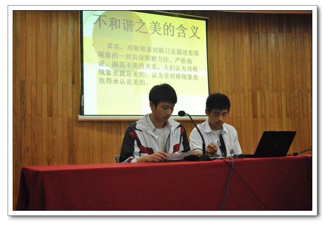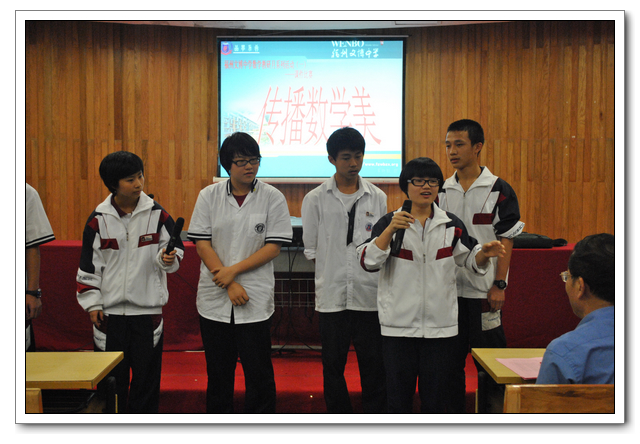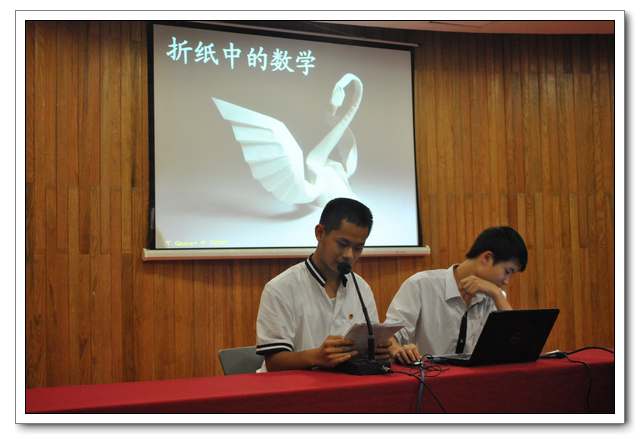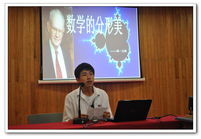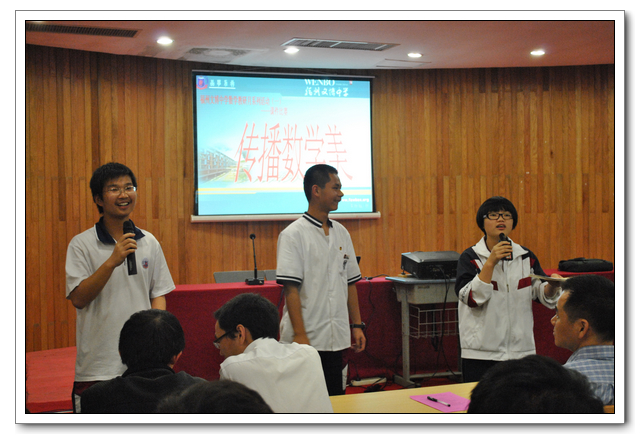 2012年5月10日数学组“教研月”活动之一 ——高一年段学生围绕主题“传播数学文化美”的课件制作比赛如期举行,高一年段以班级为单位,向我们展示了“数学上的不规则美”、“黄金分割比例”、“分形几何美”、“数学发展史的美”、“建筑对称”、“折纸中的数学”、“建筑美”等等,内容丰富多彩,让同学们更深刻地体会到数学在各个领域的美。最终高一(6)班“建筑美”获得了一等奖,高一(3)班的“折纸中的数学”与高一(4)班的“黄金分割比例”获得了二等奖。
