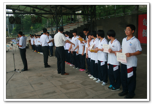 在第十四届“语文报杯”作文大赛中,我校初中语文组获得令人瞩目的成绩,在福州市各参赛学校中名列前茅。共获得省级以上奖励五十三项,其中荣获国家级特等奖一人,国家级一等奖一人,国家级二等奖三人,省级特等奖九人,省级一等奖十一人,省级二等奖十一人,省级三等奖十七人。成绩的取得源于老师们的认真指导,同学们的精心准备。林韵平老师、宋宏伟老师、曹友华老师和王丽娜老师荣获“写作指导特等奖”,苏彩萍、邱瑜、曾红妹、薛凤颖、李雪燕、陈慧君、林文婷、陈彪老师荣获“写作指导一等奖”,其中,林韵平老师和宋宏伟老师指导的学生各有十一人获奖。《语文报社》福州站负责人洪胜生老师,亲自将获奖证书送至我校,以示鼓励。