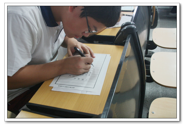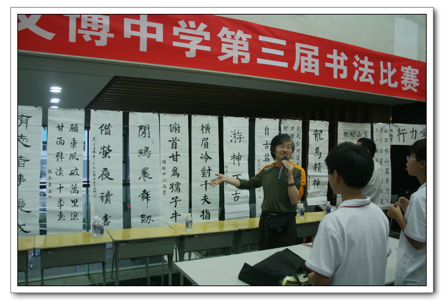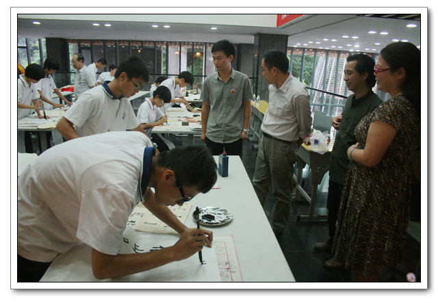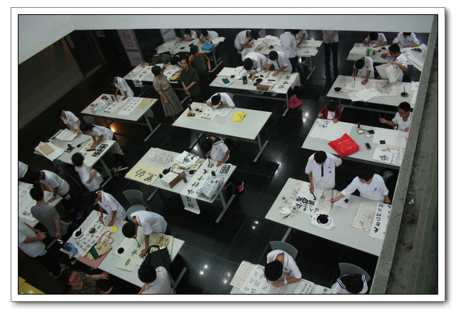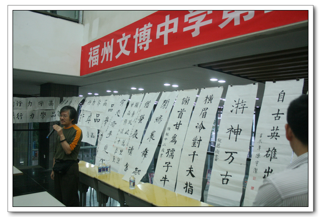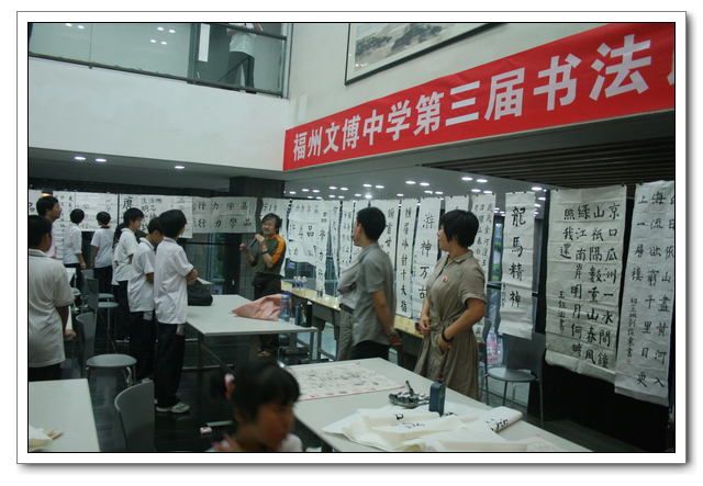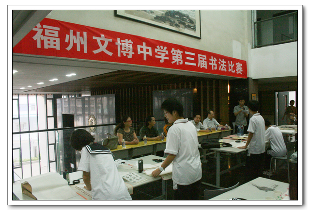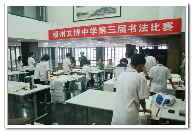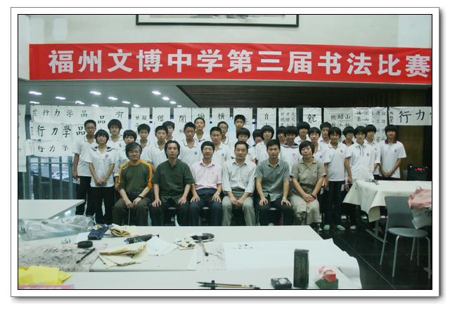 福州文博中学第三届书法比赛经过一个月的策划、筹备、比赛,已于9月26日圆满结束了硬笔和毛笔所有的赛事。此次活动开学初启动,利用第一周的美术课时间进行了硬笔书法的海选(全员参与),同时毛笔书法报名。9月17日举行了硬笔书法复赛,参赛人数多达100人。毛笔书法比赛与9月26日下午隆重举行,报名参赛同学有30人,这次比赛有幸请到了福州教育学院美术课主任黄信贤老师,福建省书法家协会理事、福州市书法家协会秘书长董家樵老师,中国硬笔书法家协会会员何暮童老师,文博中学朱之琳副校长,为我们的比赛增加了色彩,提高了一个档次,在三位评为的精心评审下,评出了如下获奖者,名单如下: