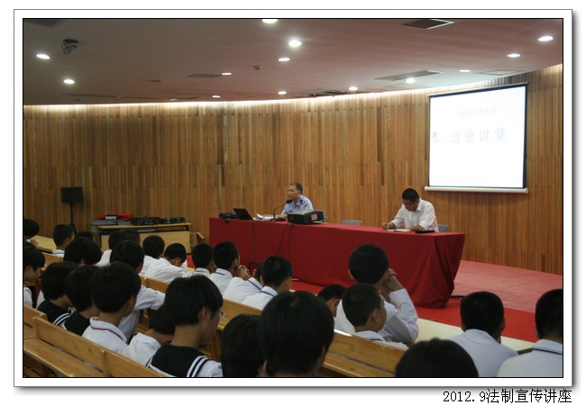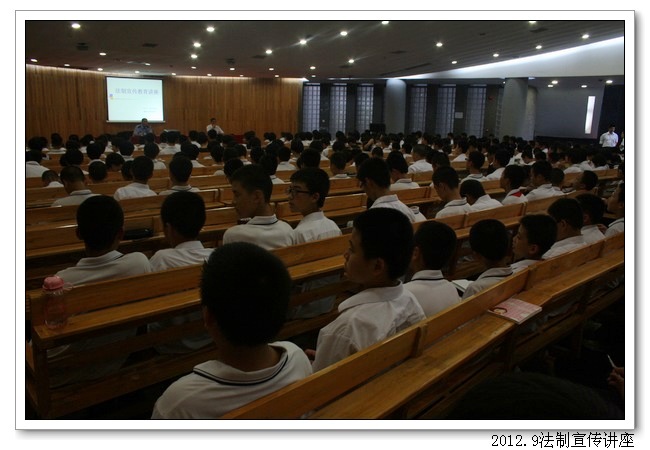 为了预防未成年人犯罪,增强学生的法制观念和遵纪守法的意识,结合学校“安全教育周”活动。9月21日、24日下午,学校邀请法制辅导员、洪山派出所胡丛荣警官分别为初一、高一年新生举办了一场法制教育讲座。胡警官向同学们介绍了《未成年人保护法》、《治安管理处罚法》等法律;并结合典型案例,宣传了如何预防校园暴力、如何自我保护等知识。受到老师和同学们的欢迎。学校将一如既往地、形式多样地开展各种安全教育活动。