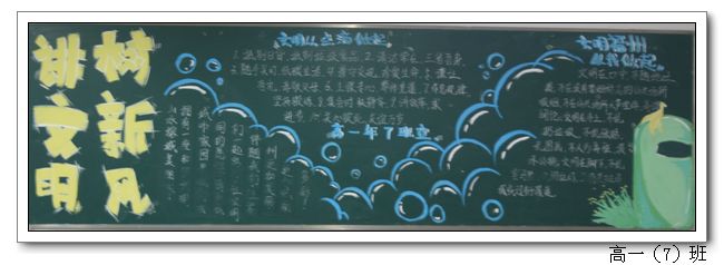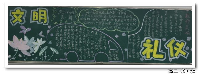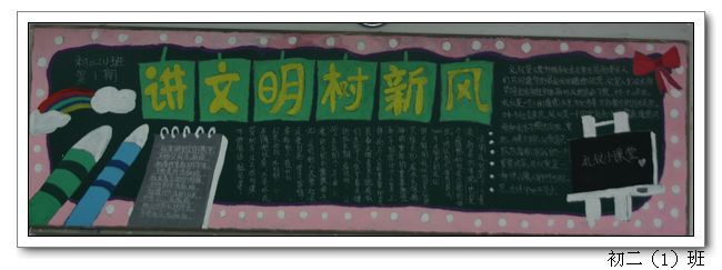 2、黑板报评比活动。根据学校制定的新学期《班级黑板报安排表》,各班以“讲文明树新风”为主题,完成了第一期的黑板报;学校组织了评选。