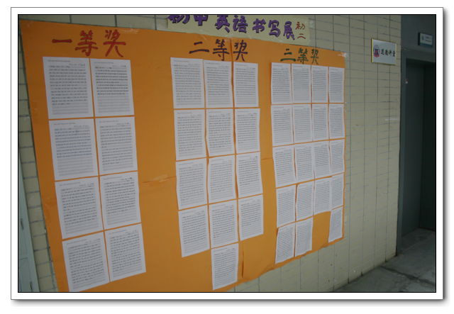为激发同学们对英语的兴趣,提高学生英语书写水平,同时给同学们一个展示英语书写的舞台。国庆前,布置制作手抄报;国庆后统一组织书写比赛。并在赛后进行评选各奖项及颁奖。本次活动,在初一、二英语老师的精心组织和指导下,全体同学踊跃参与。这不仅让同学们意识到了英语正确书写的重要性,同时锻炼了孩子们的动手能力,更激发了同学们对英语的书写兴趣。