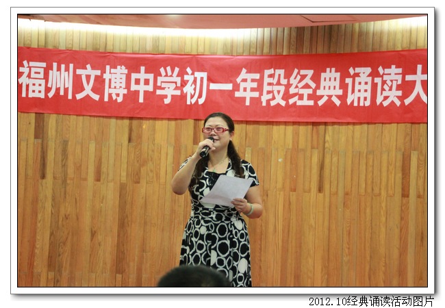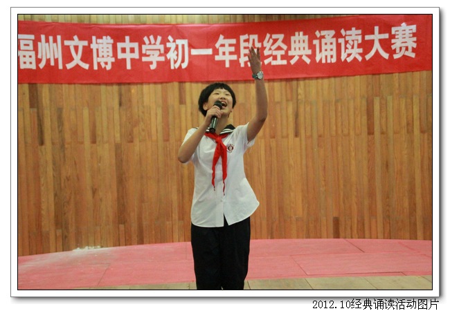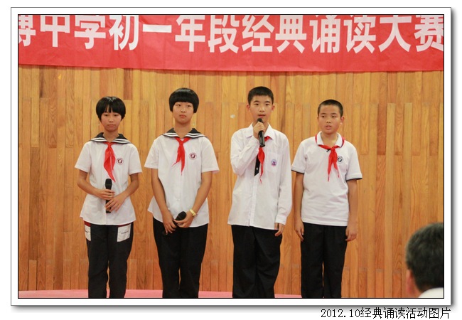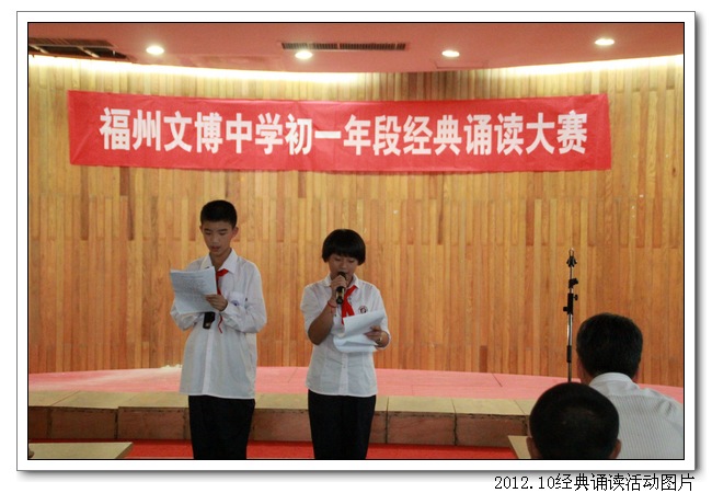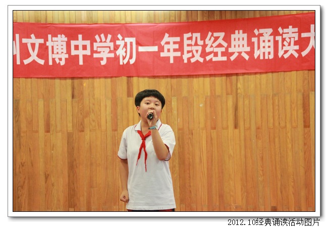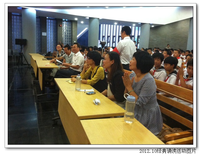 10月11日下午,德育处、初一语文组联合举办了“诵国学经典, 扬华夏文明”古代经典诵读大赛。活动得到了初一年段师生和初二、高一语文集备组的大力支持。活动前,初一各班精心组织,认真准备,倾注了极大的热情。活动中,台上的选手朗诵情感真挚,吐字清晰,抑扬顿挫,诵做俱佳,配乐巧妙,具有很强的艺术感染力。台下的同学们的掌声和欢呼声此起彼伏,高潮迭起,精彩纷呈。初二曾红妹老师对比赛做了精彩的点评,最后在朱之琳校长即兴诵读毛主席的《沁园春•长沙》声中,比赛落下帷幕。