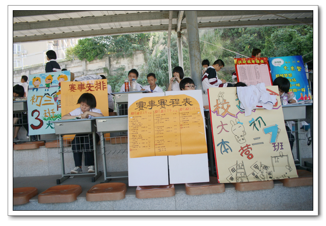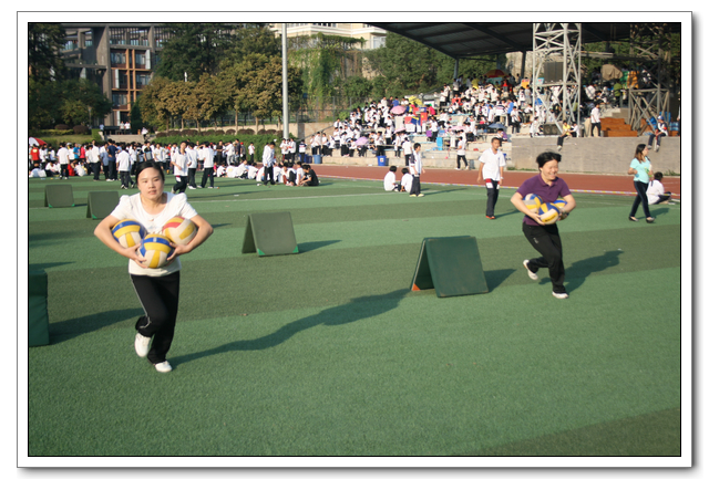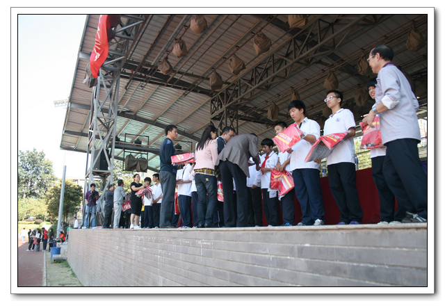 全体工作人员认真做好服务与宣传工作。共颁发获奖证书384本、奖状108张、金银铜奖牌共336面;共载录抄写了288份比赛成绩报告单;共编写了10期校运会快报。