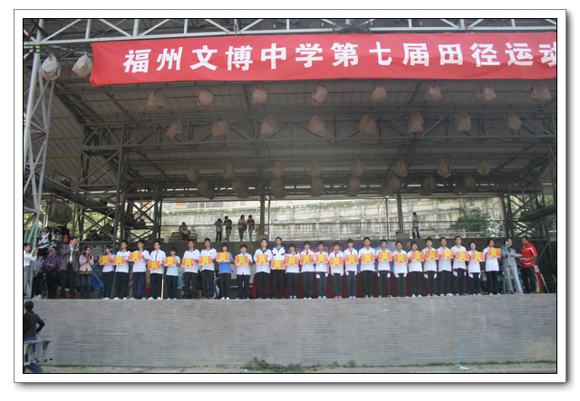 紧张而难忘的福州文博中学2012-2013学年秋季田径运动会历时一天半,在校运会组委会的领导下,在体育组的精心组织和学校各部门、各年段、各班级的配合下,在全体运动健儿的努力拼搏下,取得了圆满成功!运动会上,运动员顽强拼搏、勇攀高峰,取得了骄人的成绩!