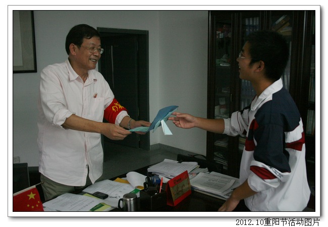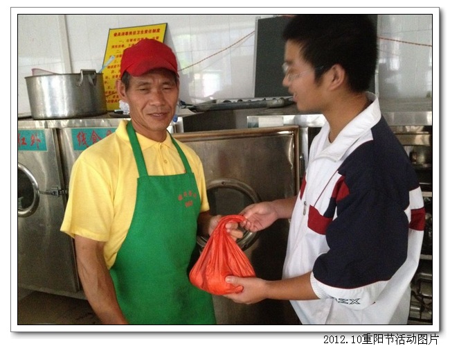 10月23-24日,校两委干部组织开展了“尊老敬老助老”的实践活动。为在学校一线工作的老龄食堂员工送上了水果及节日祝福;并采访了我校已到退休年龄却仍在工作岗位上发光发热的老领导,向他们赠送了同学们亲手制作的贺卡;林仰仙校长助理还为学生会题字。