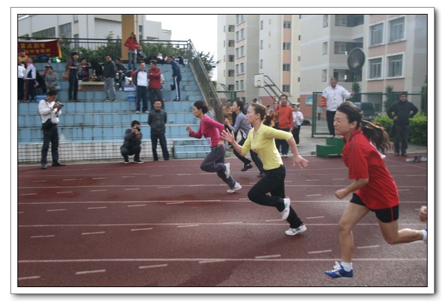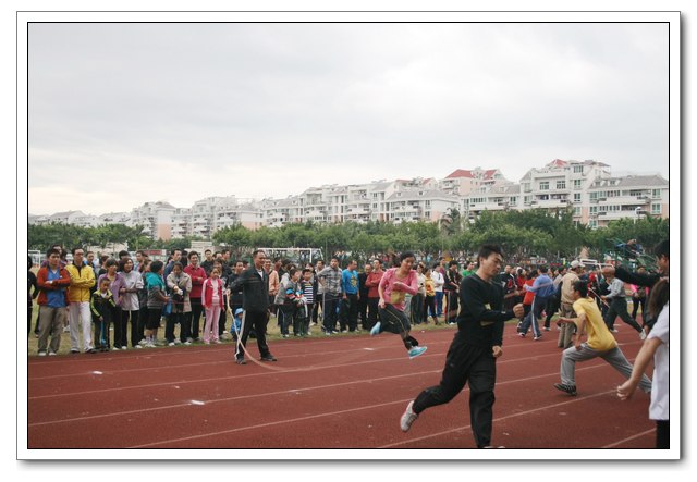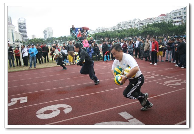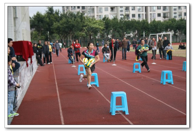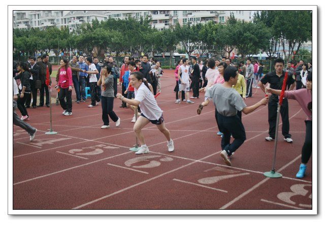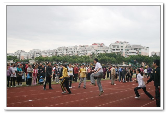 11月17日,由福州市教育局、福州市教育工会联合举办的福州市教工第二十五届“耕耘杯”田径运动会在三中金山校区举行。本届运动会共设置54个小项,除短跑、中长跑、跳高、跳远和铅球等传统项目外,还设置了趣味项目,如集体跳长绳、飞标、掷乒乓球、抱球绕八字跑、一分钟投篮、击垒和迎面接力等体育项目。