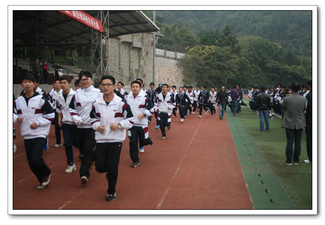 为全面贯彻落实《中共中央国务院关于加强青少年体育增强青少年体质的意见》精神,广泛开展全国亿万学生阳光体育运动。12月20日上午9:30,在校长的指导下,教务处、德育处、年段长班主任、体育组的组织下,由校中层以上领导的带领全校学生开展阳光体育“爱我福建·象征性环闽冬季长跑”开跑仪式正式启动。