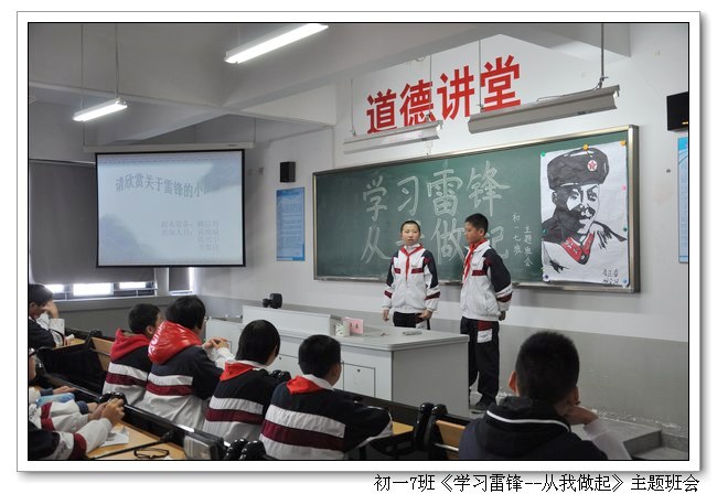 阳春三月是学习雷锋活动月,今年是毛主席题词“向雷锋同志学习”的50周年。3月4日下午,我校组织开展了主题为“学习雷锋”的班会观摩活动。活动由初一7班和高一1班承办(班主任林金土、张从刚老师)。校领导俞继圣校长、朱之琳副校长、周啸翔副校长、林仰仙校长助理、俞丽芳教育督导和全体年段长、班主任参加了活动。